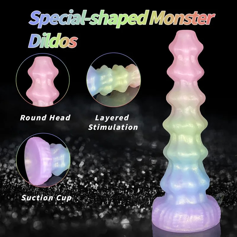 7.5 IN Silicone Demon Dildo Fantasy Knot Dildo with Glow-In-The-Dark Base
