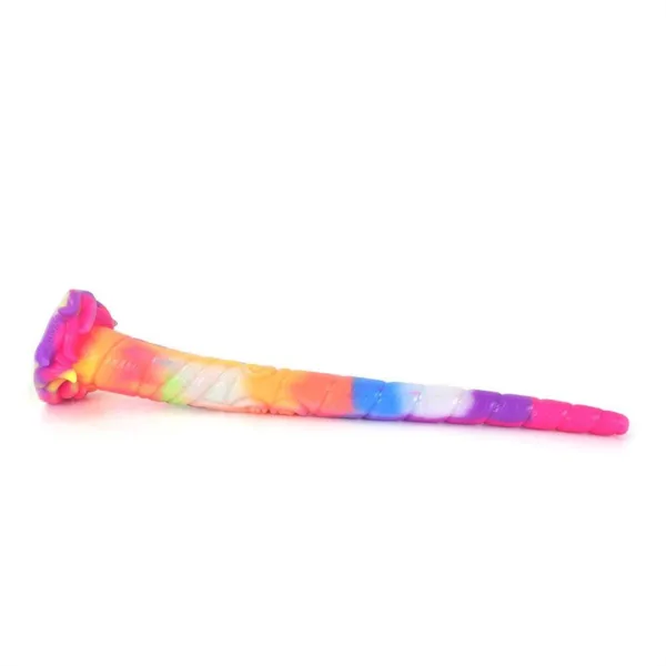This thing is really long and really fun. Unlike a lot of lengthy toys this one is firm enough to actually use for penetration. The suction cup is powerful enough to hold it in place and works really well. The glow is surprisingly bright and the colors are vibrant too! I don’t have a lot of long toys that I like and I think this is one of the few I enjoy.