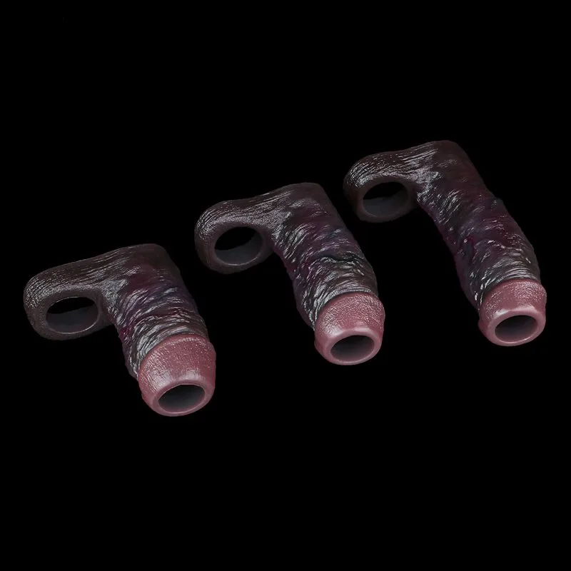 4/4.6/5.5 Inch Black Open Headed Realistic Penis Enhancer Sleeve