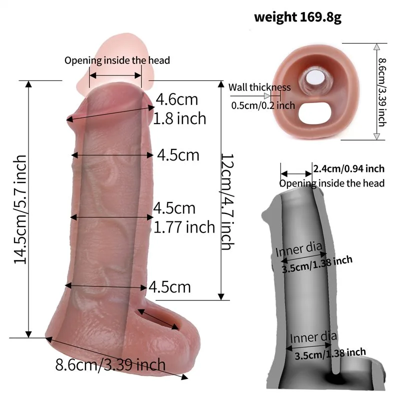 5.7 Inch Open Head Ultra Realistic Silicone Penis Extender Sleeve