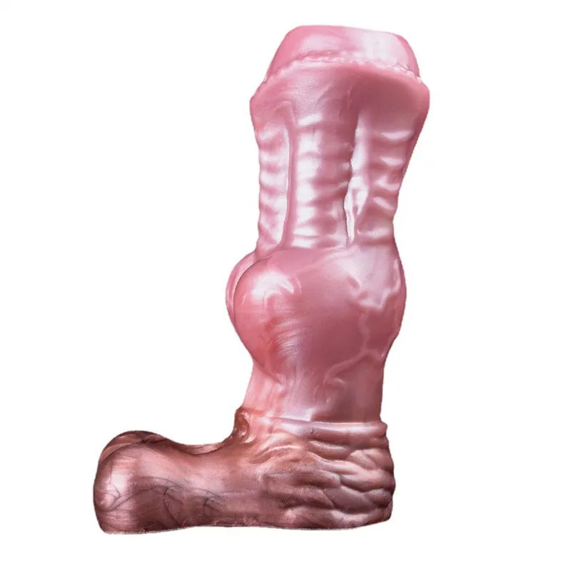 8 IN Fantasy Silicone Double Knot Dog Penis Dildo Rose Gold & Pink