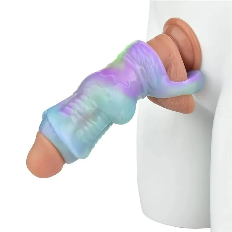 5.3/6.5 Inch Luminous Silicone Knot Sleeve Fantasy Penis Extension