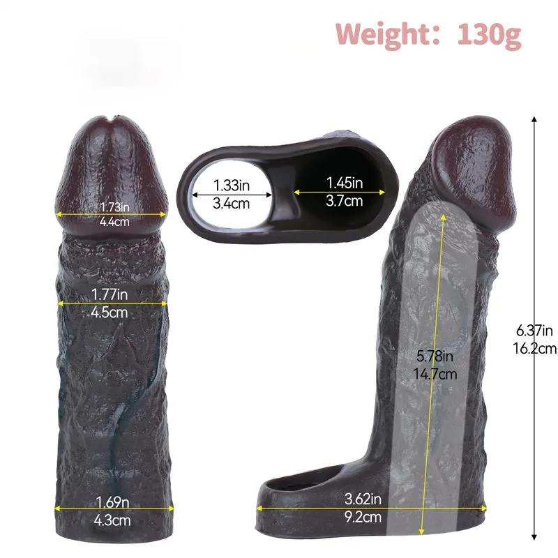 6.3 Inch Black Elastic Silicone Realistic Penis Extender Sleeve