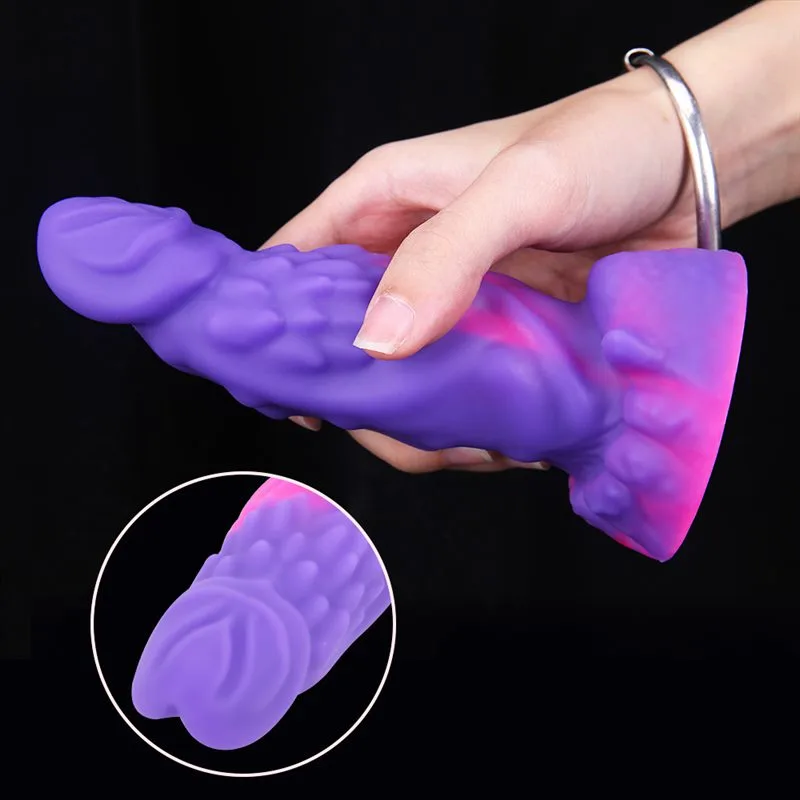7.5 IN Silicone Demon Dildo Fantasy Knot Dildo with Glow-In-The-Dark Base
