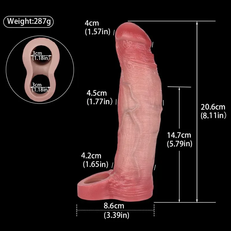 8.1 Inch 10 Vibration Penis Girth Enhancer Sleeve Realistic Cock Sheath