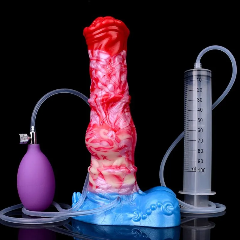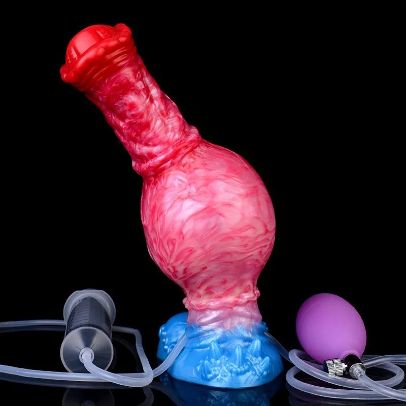 8.5 Inch Horse Knot Inflatable and Ejaculating Dildo Silicone Animal Penis