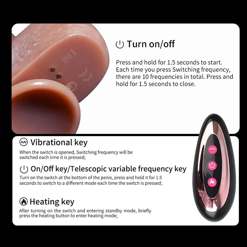 8.5 Inch Most Realistic Silicone Heating Vibrating Thrusting Dildo
