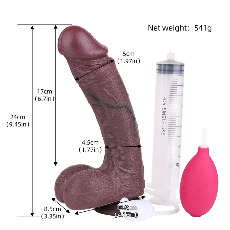 9.5 Inch Big Black Double Layer Silicone Ejaculating Dildo 8