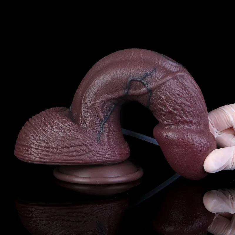 9.7 Inch Black Big Head Real Life Like Silicone Ejaculating Dildo