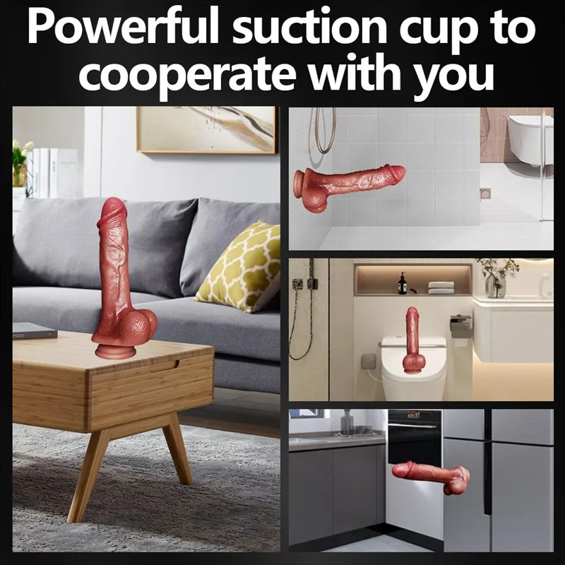9 Inch Best Real Skin Feeling Heating Telescoping Dildo Vibrator 6