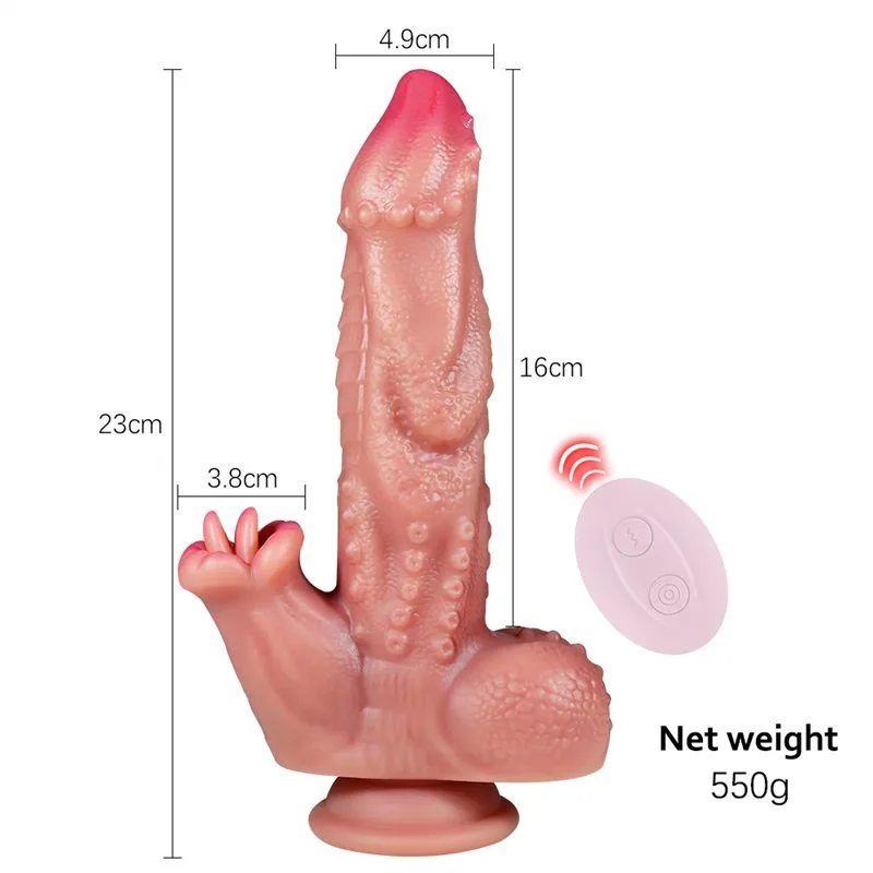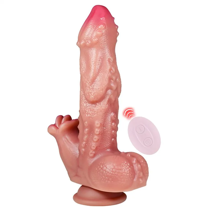 9 Inch Heated Thrusting Vibrating Exotic Dildo With Double Tongue Licking