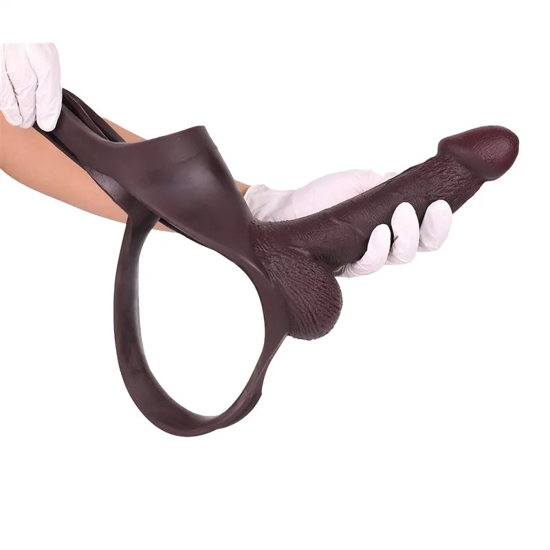 Black Silicone Hollow Thong Strap-On Big Head Penis Sleeve 8