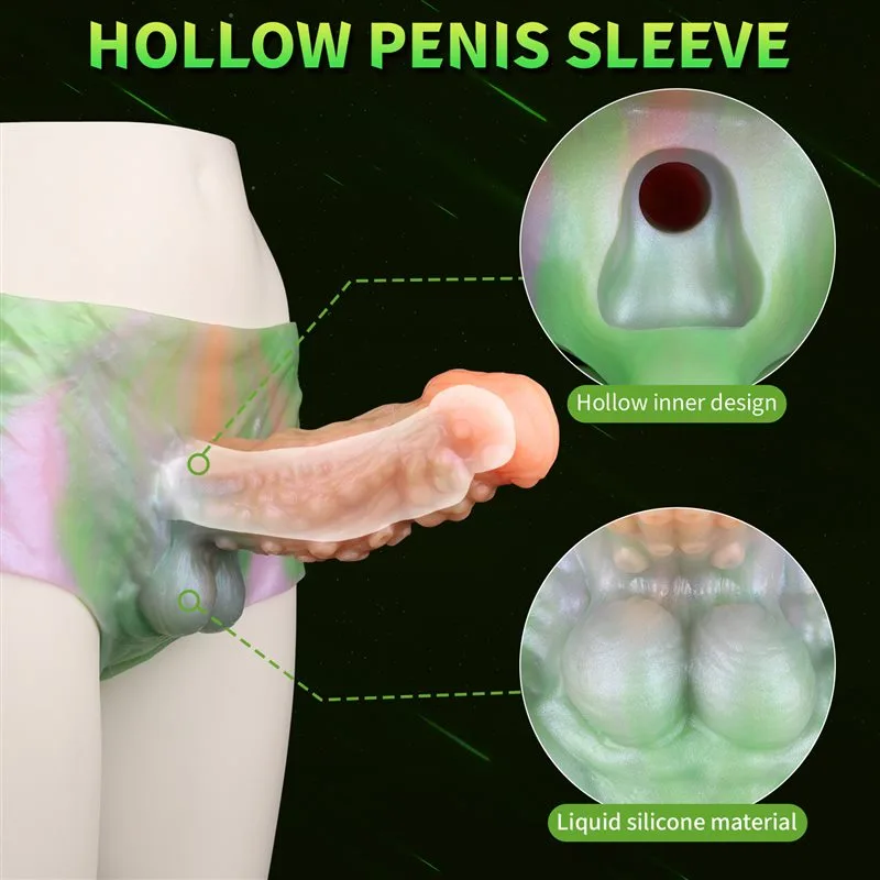 Fantasy Beaded Hollow Dildo Sleeve Soft Silicone Penis Pant 9