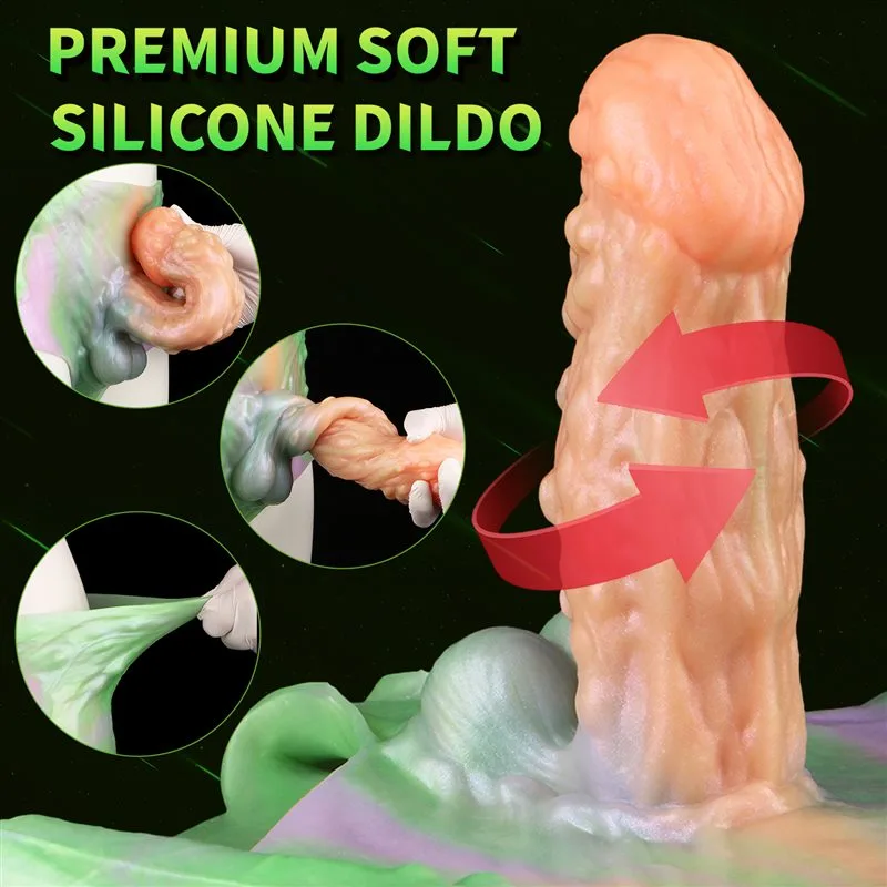 7.5 IN Silicone Demon Dildo Fantasy Knot Dildo with Glow-In-The-Dark Base