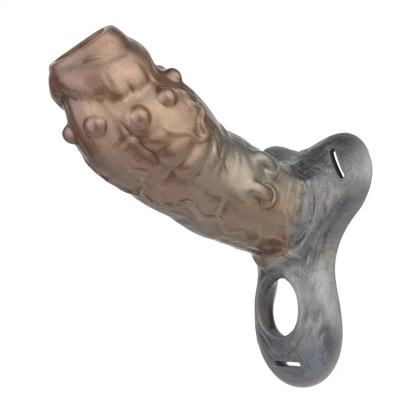 Leather Strap On Beaded Exotic Penis Sleeve Harness Set