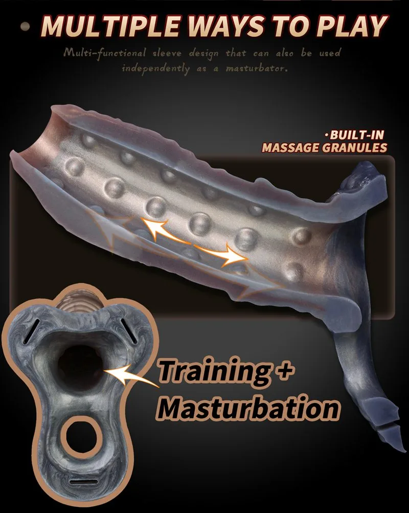 Leather Strap On Knotted Alien Penis Sleeve Harness Set