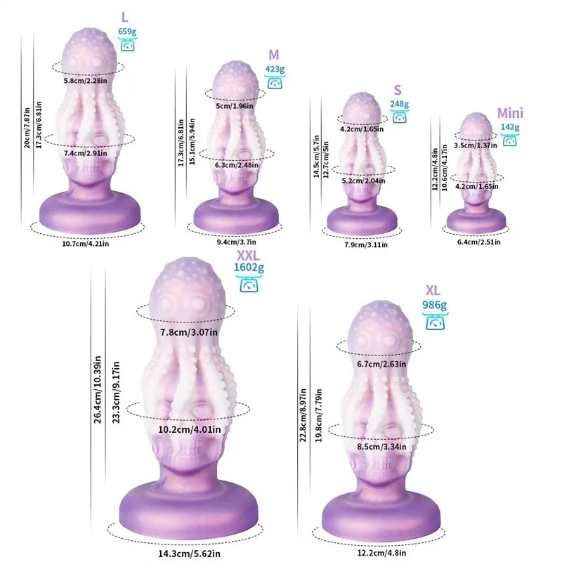 Purple Octopus and Skull-Shaped Dildo Butt Plug 6 Sizes Available